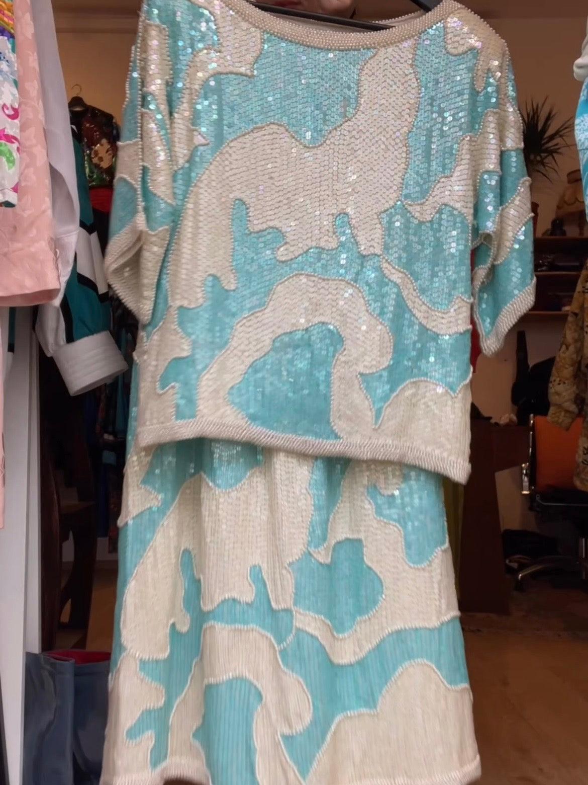 Gefüttert mit Seide, Rockbund mit elastische m Gummizug. Sehr üppig verziert mit Perlen und Pailletten in wunderschöner Farbkombination.